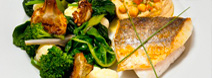 > Peix amb 'Migas' de pa i nyores, amb salsa dolça i taronja